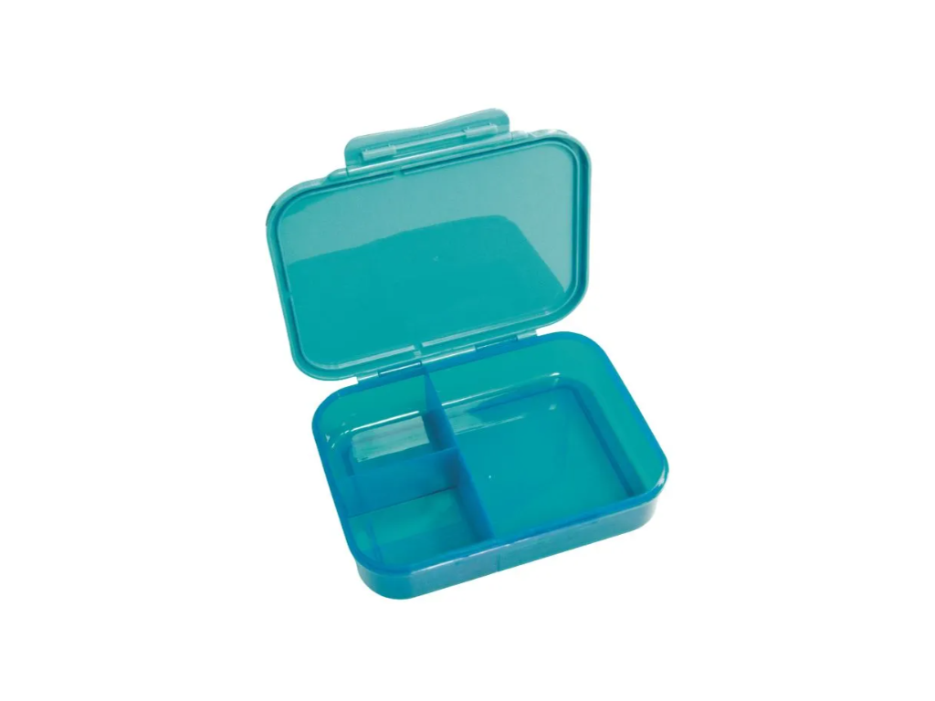 Chytrá vnitřní přepážka: Box je vybaven posuvnou nebo vyjímatelnou přepážkou, která umožňuje oddělit hlavní jídlo (sendvič, bagetu) od doplňků (kousky ovoce, zeleniny nebo sladké odměny.