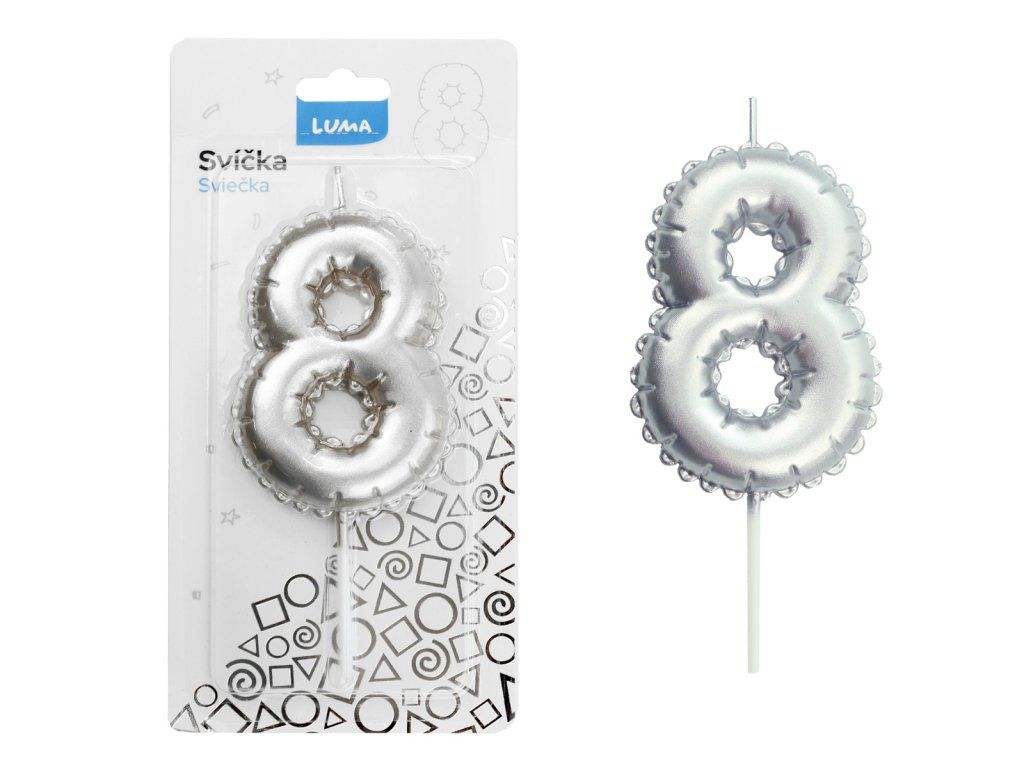 Svíčka č. 8 balónek STŘÍBRNÝ LUMA