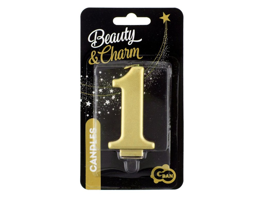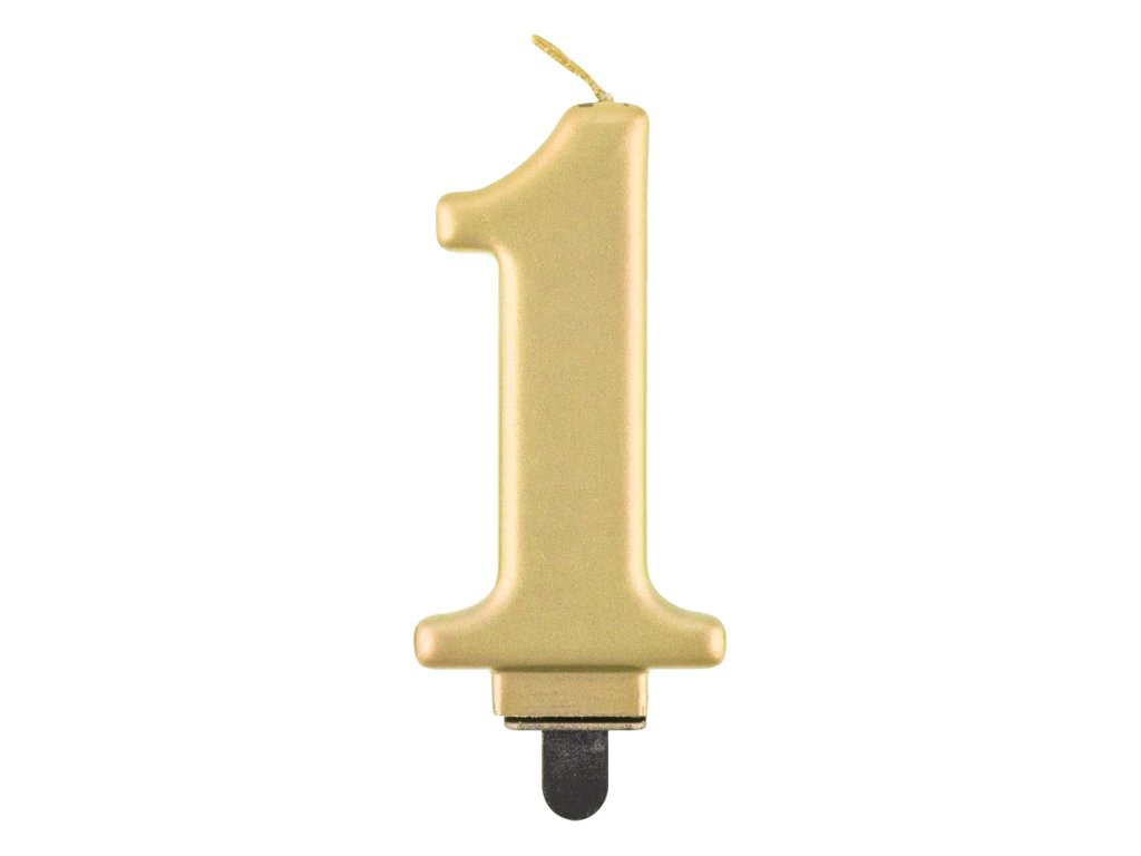 Svíčka dortová - číslice 1, metalická, zlatá 8cm