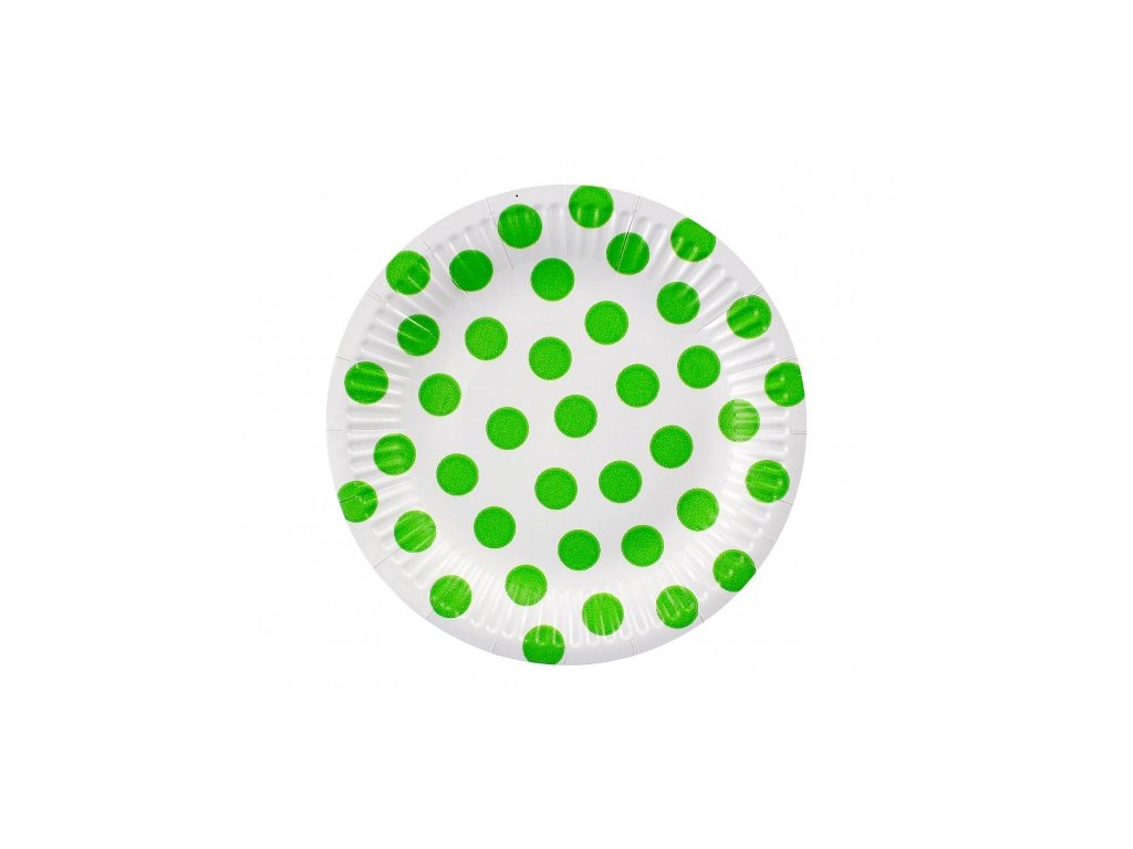 Papírové talíře se zelenými puntíky 18cm 6ks