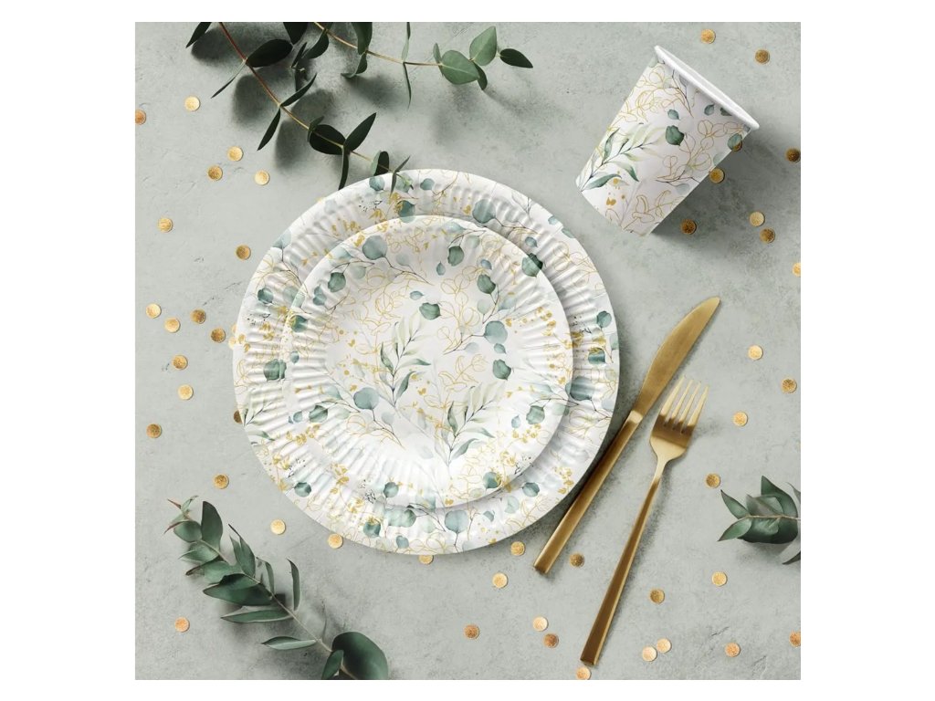 Talíř papírový 23cm 8ks Golden Eucalyptus