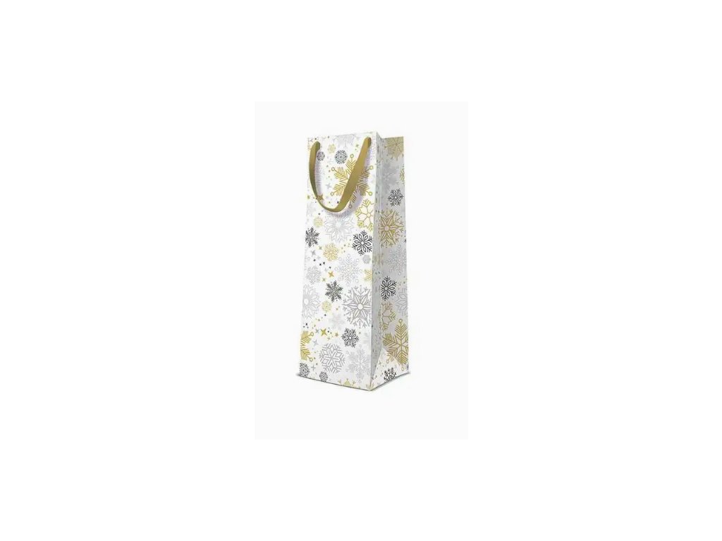 Dárková taška PAW na láhev 12x37x10 cm Metallic Snowflakes