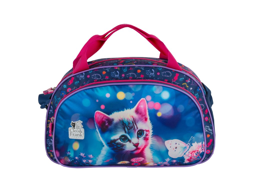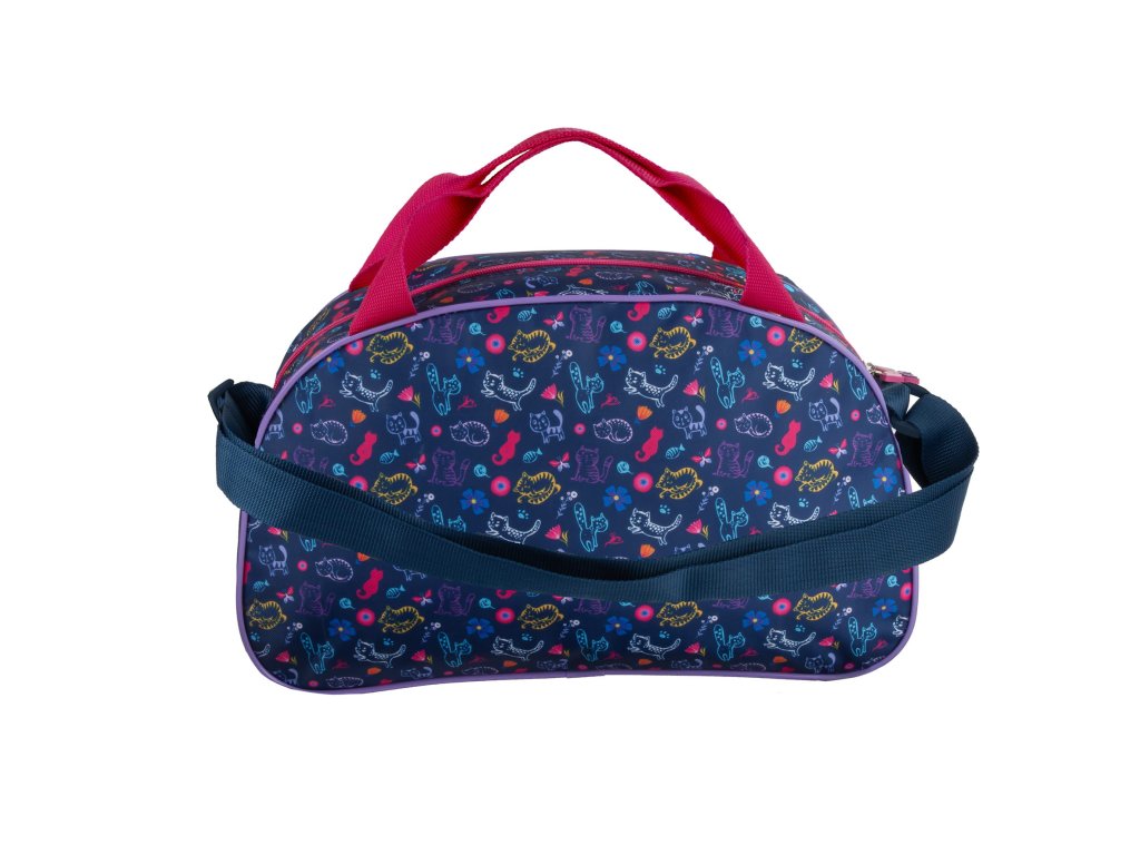 Prostorná cestovní taška s velkou přední kapsou na zip. Ideální do bazénu, na sportovní aktivity nebo krátké výlety. Má nastavitelný ramenní popruh a dvě rukojeti.