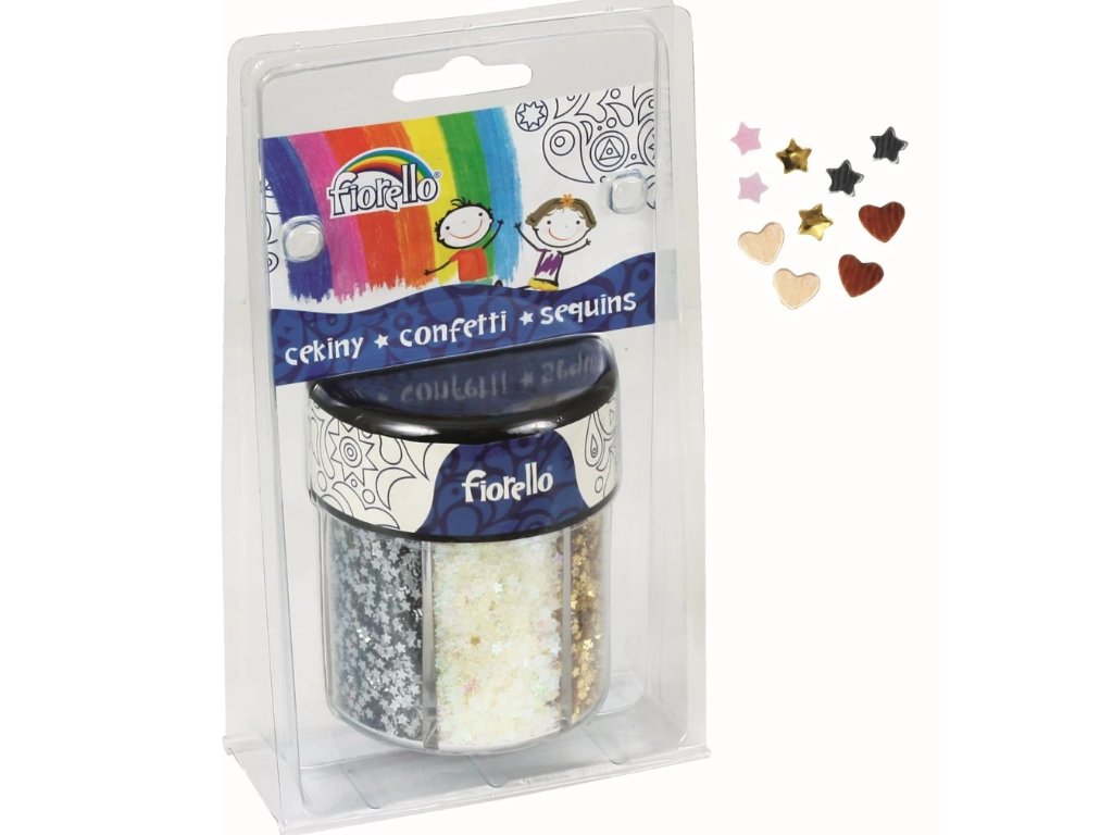 4 barvy hvězdiček a 2 barvy srdíček v plastové dóze, 80g