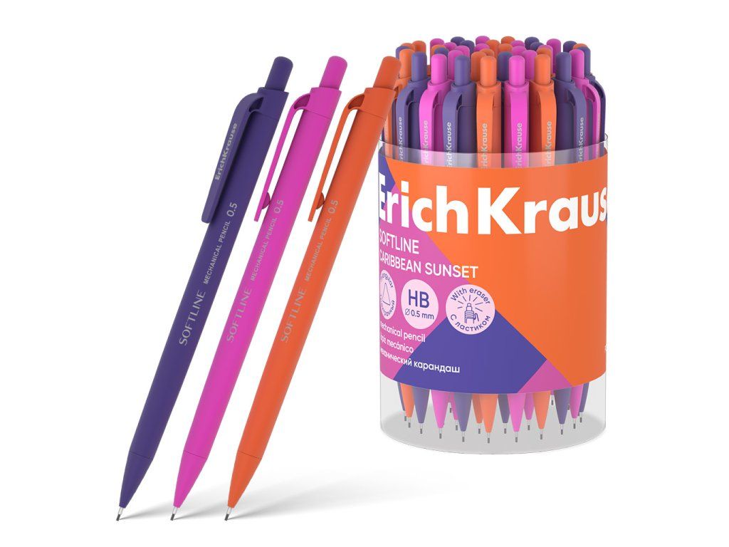 Mechanická tužka má matné šestihranné tělo s potiskem a povrchovou úpravou Soft Touch. V mačkacím mechanismu má ořezávátko. Stupeň tvrdosti: HB. Průměr tuhy je 2,0 mm.