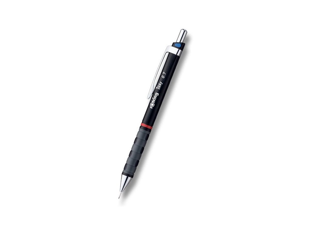 Mechanická tužka (mikrotužka) Rotring Tikky černé barvy je skvělým nástrojem pro technické výkresy a náčrtky. Na první pohled ukazuje, jaká šíře linky je k dispozici, a umožňuje tak dělat náčrtky, mechanické kresby a texty čistě a dle rýsovacích standardů. Jemný kovový hrot je ideální pro použití v šablonách. Barevné kódování je v souladu s ISO 3098.