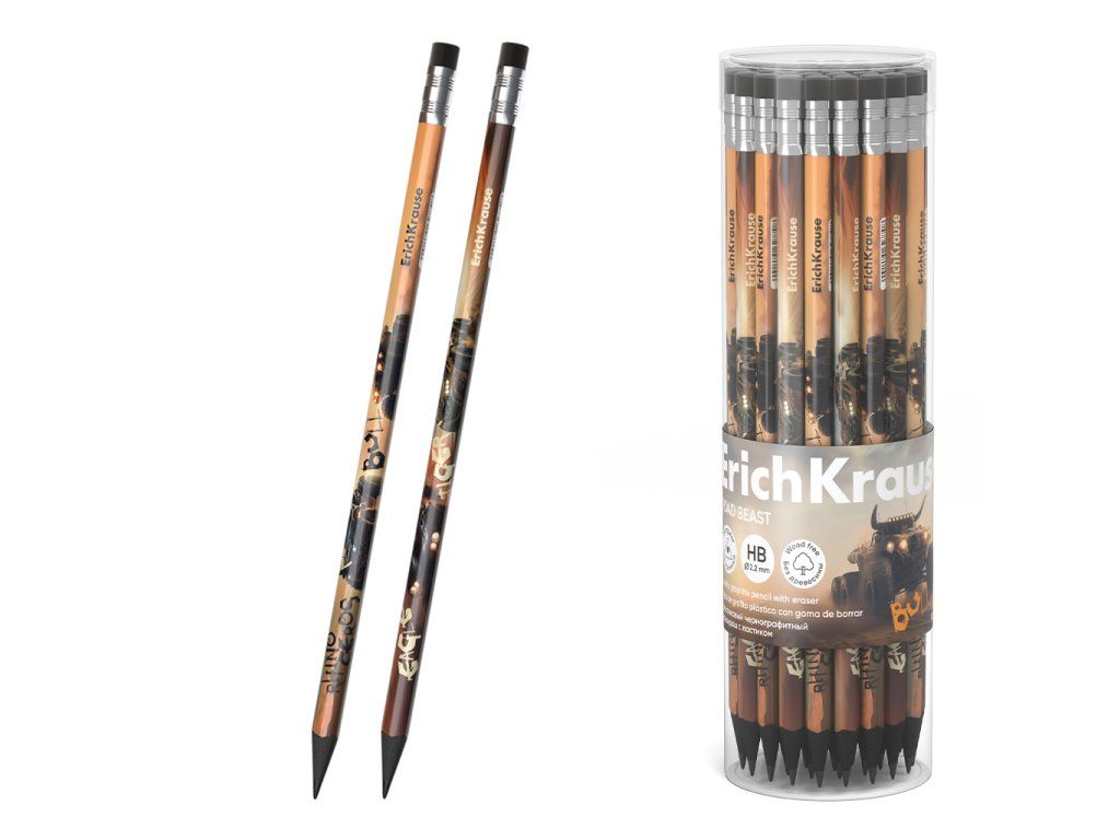 Tužka grafitová trojhranná bezdřevá HB s pryží ErichKrause Road Beast