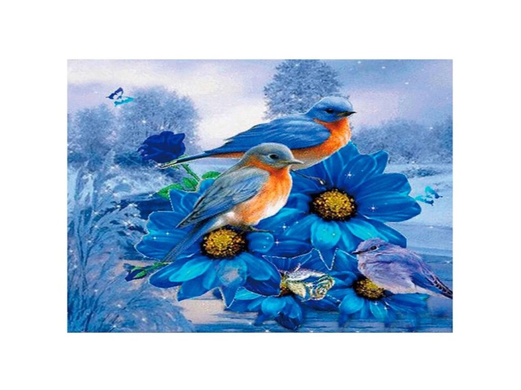 Diamantové malování, diamantový obrázek, motiv MODŘÍ PTÁČCI