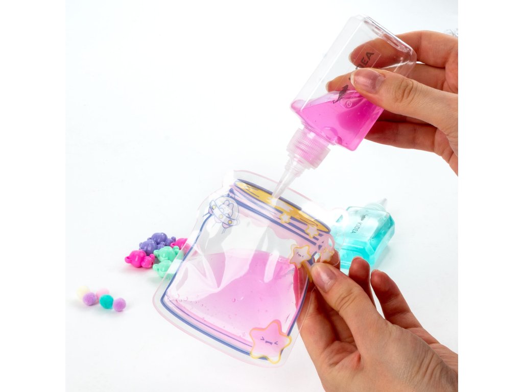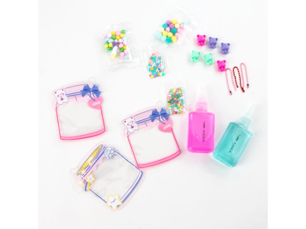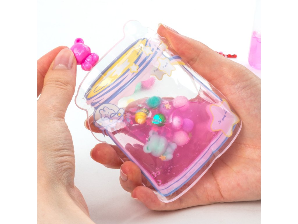 Vytvořte si vlastní malá umělecká díla v kapesním balení! Naplňte sáček speciálním gelem a přidejte přiložené doplňky, jako jsou flitry, míčky, plyšové medvídky a bambulky. Výsledný přívěsek na klíče je nejen originální dekorací, ale také skvělým prostředkem pro uvolnění stresu s gelovou konzistencí. Sada obsahuje tři sáčky na zip, dvě nádobky s gelem o objemu 60 ml a bohatý sortiment dekorací. Hotový sáček si zavěste na řetízky na batoh, klíče nebo kabelku a užívejte si je celý den!