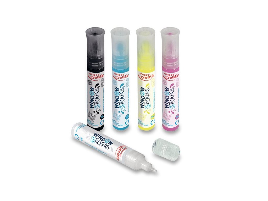 Kreativní sada Maped Creativ obsahuje 30 šablon a 5 tub s barvou pro vytvoření vlastních samolepek na okno. Dají se použít i na lednici, monitor či display telefonu. Přilnou také na porcelán a glazovanou keramiku. Šablony mají trendy motivy. Jemný hrot tuby zajišťuje přesné kontury.
