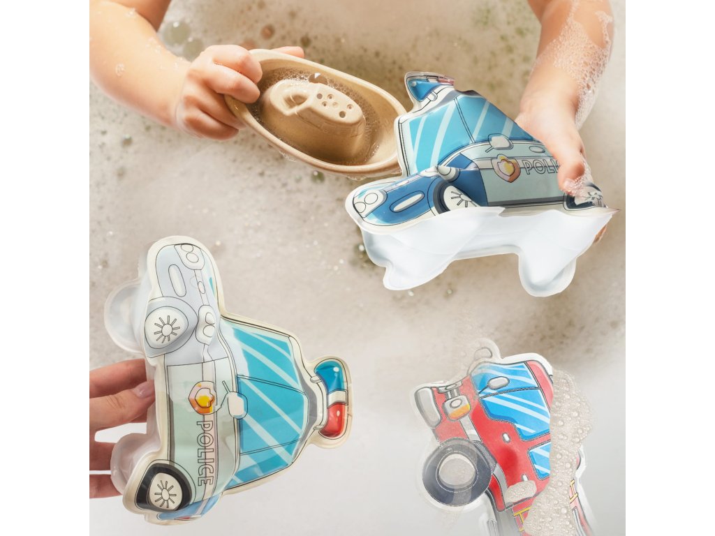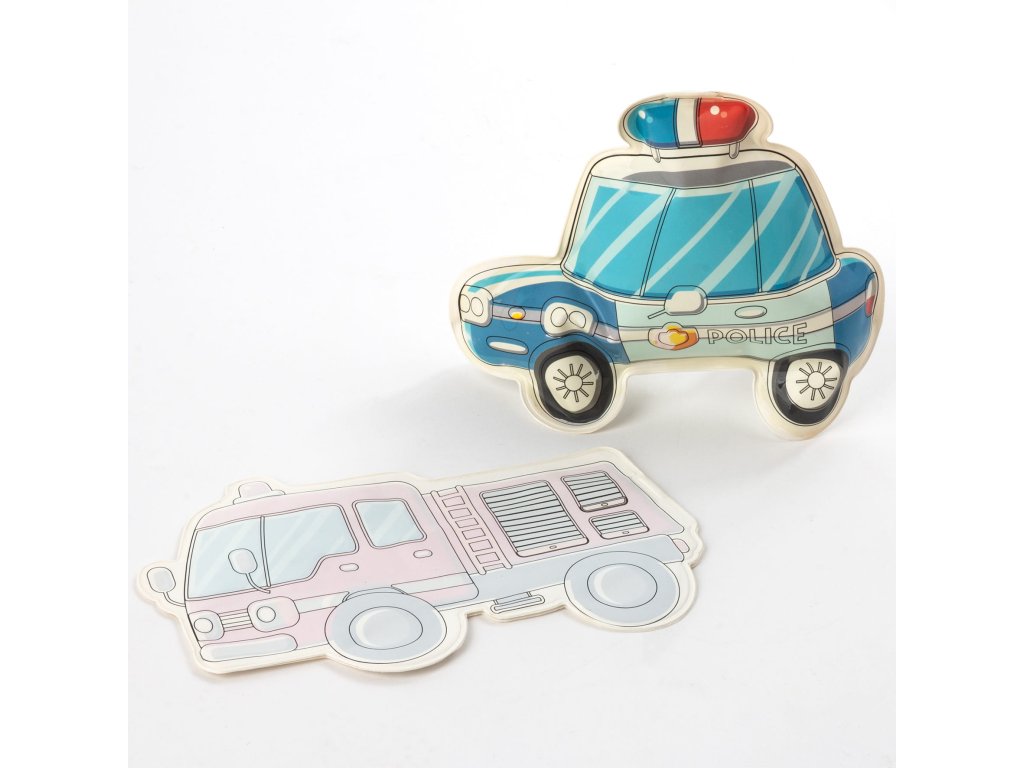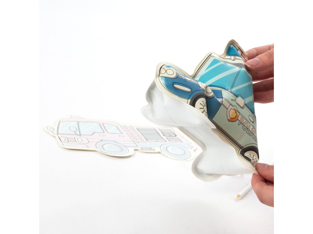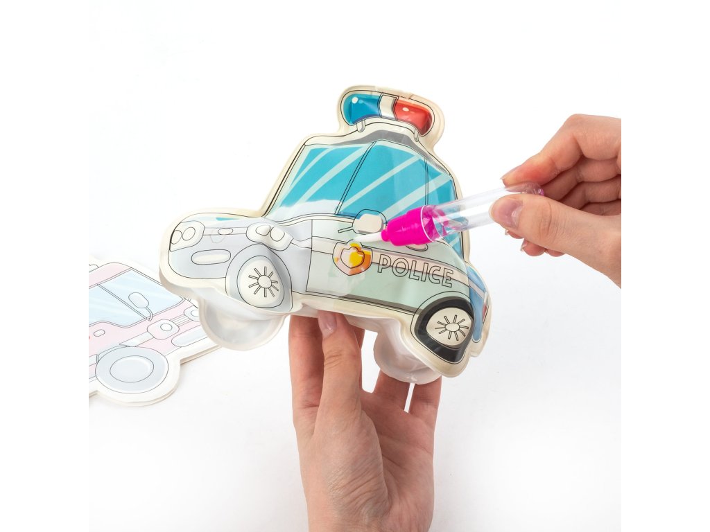 Kouzelná vozidla na malování vodou. Součástí balení jsou dvě hračky. Požádejte dospělého, aby figurku nafoukl pomocí přiložené trubice. Po vyjmutí trubice se ventil automaticky uzavře a vzduch zůstane uvnitř. Naplňte přiložený fix vodou a figurku namalujte – barvy se magicky objeví všude, kde se dostanou do kontaktu s vodou. Po zaschnutí zmizí a vy můžete začít znovu. Jsou to skvělé hračky do koupele. Sada obsahuje dvě vozidla a fix naplněný vodou.