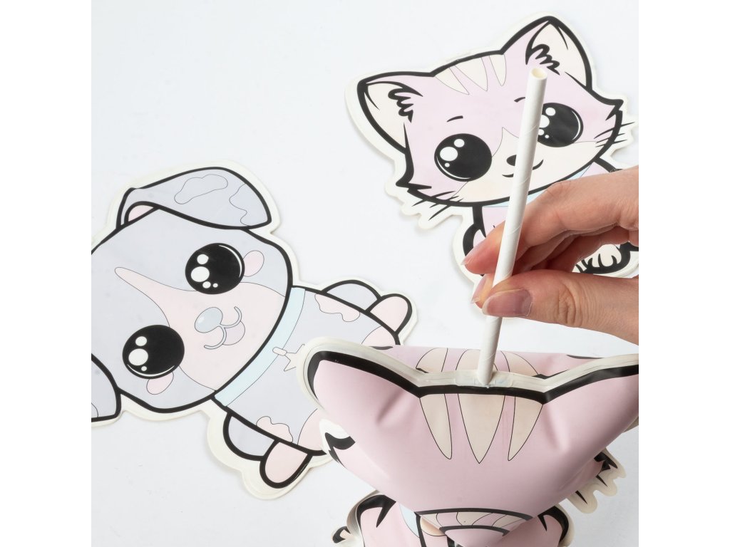 Kouzelná zvířátka na malování vodou. Součástí balení jsou dvě hračky. Požádejte dospělého, aby figurku nafoukl pomocí přiložené trubice. Po vyjmutí trubice se ventil automaticky uzavře a vzduch zůstane uvnitř. Naplňte přiložený fix vodou a figurku namalujte – barvy se magicky objeví všude, kde se dostanou do kontaktu s vodou. Po zaschnutí zmizí a vy můžete začít znovu. Jsou také skvělou hračkou do koupele. Sada obsahuje dvě figurky a fix naplněný vodou.