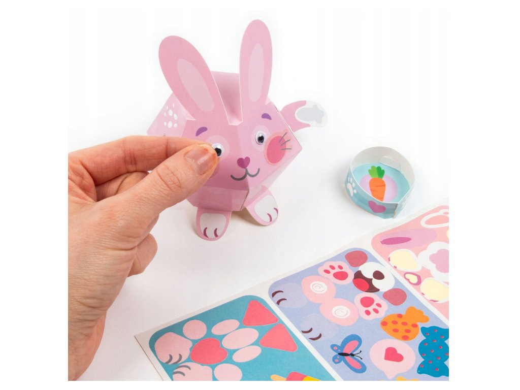 Figurky zvířat svépomocí: králíček, quokka a kotě. Přiložený návod velmi usnadňuje sestavení figurek. Nakonec pastelová zvířátka jednoduše ozdobte přiloženými samolepkami a pohyblivýma očima a máte hotovo! Sestavení figurek rozvíjí jemnou motoriku vašeho dítěte a rozvíjí jeho soustředění. Hraním si s nimi může vaše dítě vytvářet jedinečné příběhy a dozvědět se více o světě zvířat. Figurky mohou také sloužit jako dekorace do pokoje nebo jako jedinečný dárek pro kreativní batole k jakékoli příležitosti.