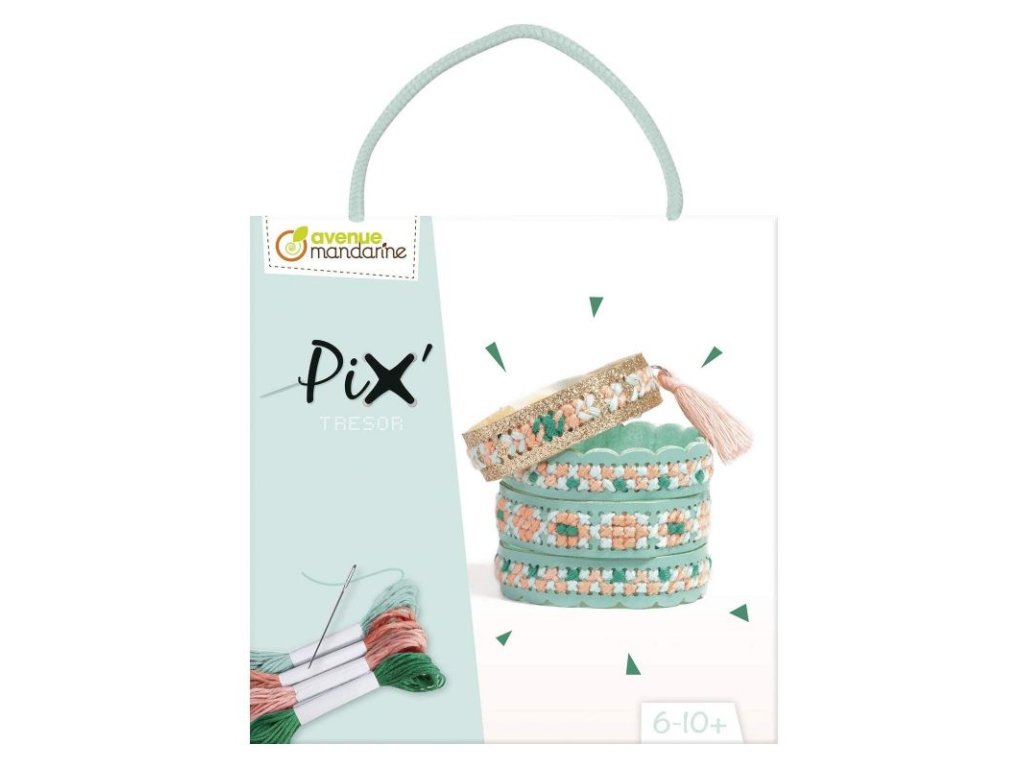 Kreativní sada Pix Tresor na výrobu a vyšívání náramků. Vaše dítě může objevit radost z vyšívání a může si vyrobit manžetový náramek a třpytivý náramek přátelství.
