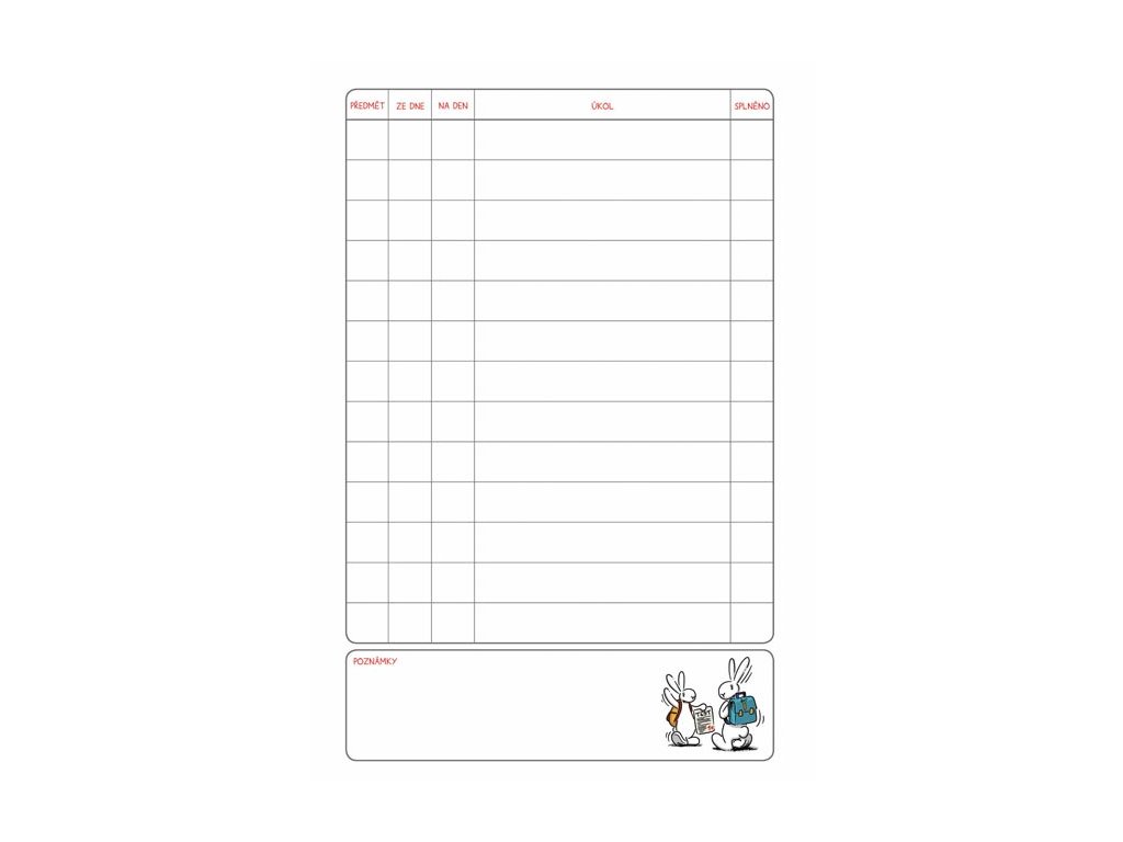 Úkolníček Bob a Bobek – Přehledně, zodpovědně a s radostí! \r\n\r\n\r\n\r\nFormát A5 zaručuje dostatek místa na všechny domácí úkoly, poznámky i důležité připomínky. \r\n\r\n\r\n\r\nS tímto úkolníčkem bude každý den jasnější, školní povinnosti přehlednější \r\n\r\na organizace snadnější – vše s úsměvem a pohodou! \r\n\r\n\r\n\r\nZapsané úkoly přehledně a bez starostí! \r\n\r\n\r\n\r\nÚKOLNÍČEK OBSAHUJE:\r\n\r\n- osobní údaje\r\n\r\n- telefonní čísla\r\n\r\n- prostor pro poznámky\r\n\r\n- malá násobilka\r\n\r\n- geometrické vzorce a matematické vzorečky\r\n\r\n- vyjmenovaná slova\r\n\r\n- rozvrh hodin\r\n\r\n\r\n\r\nFormát: A5\r\n\r\nMotiv: Bob a Bobek\r\n\r\nPočet stran: 40 stran\r\n\r\n\r\n\r\nUvedená cena je za 1 ks.Doplňkové parametry