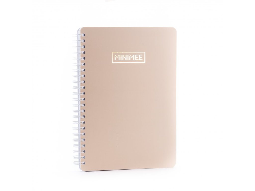 Originální tečkovaný zápisník A5 MINIMEE s luxusním zlatým prvkem a sametovou obálkou v barvě šampáň, který potěší všechny pisálky a milovníky bullet journalu či scrapbookingu.