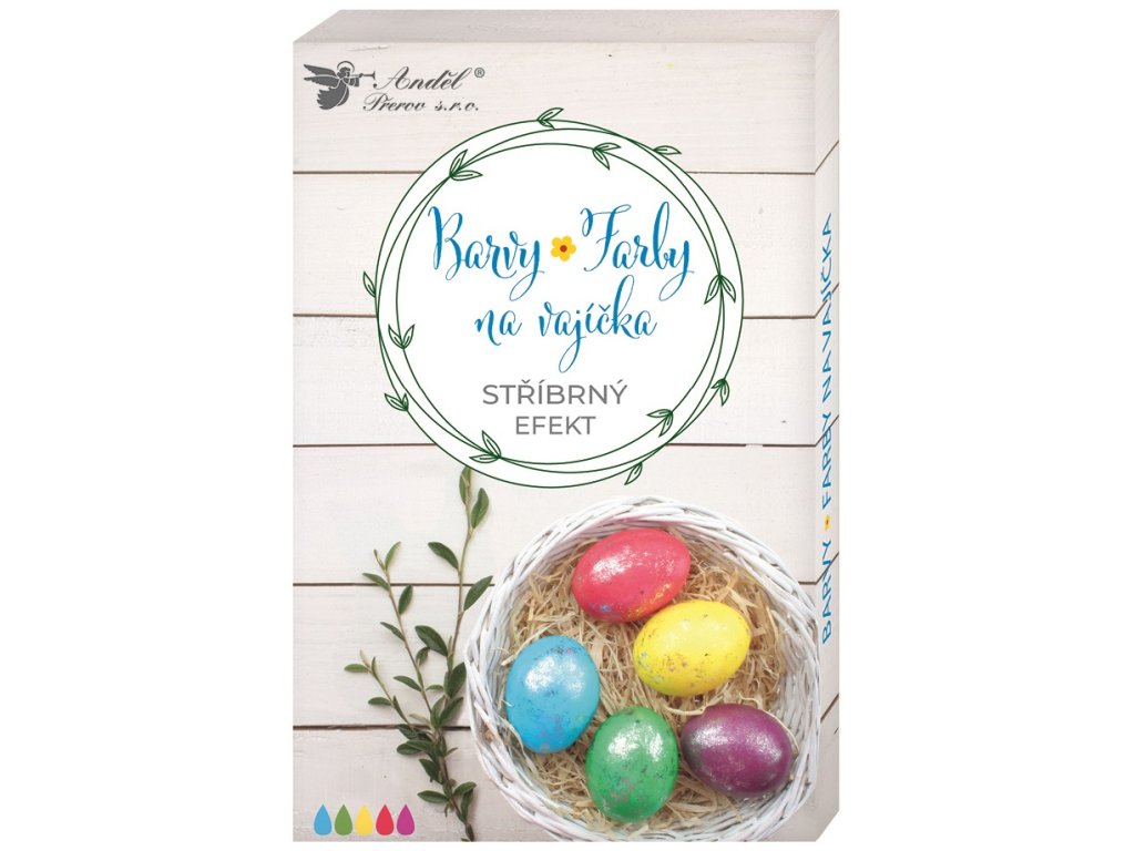 Barvy na vajíčka gelové se stříbrným efektem, 5 ks, rukavice