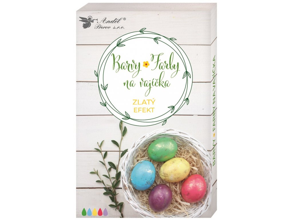 Barvy na vajíčka gelové se zlatým efektem, 5 ks, rukavice