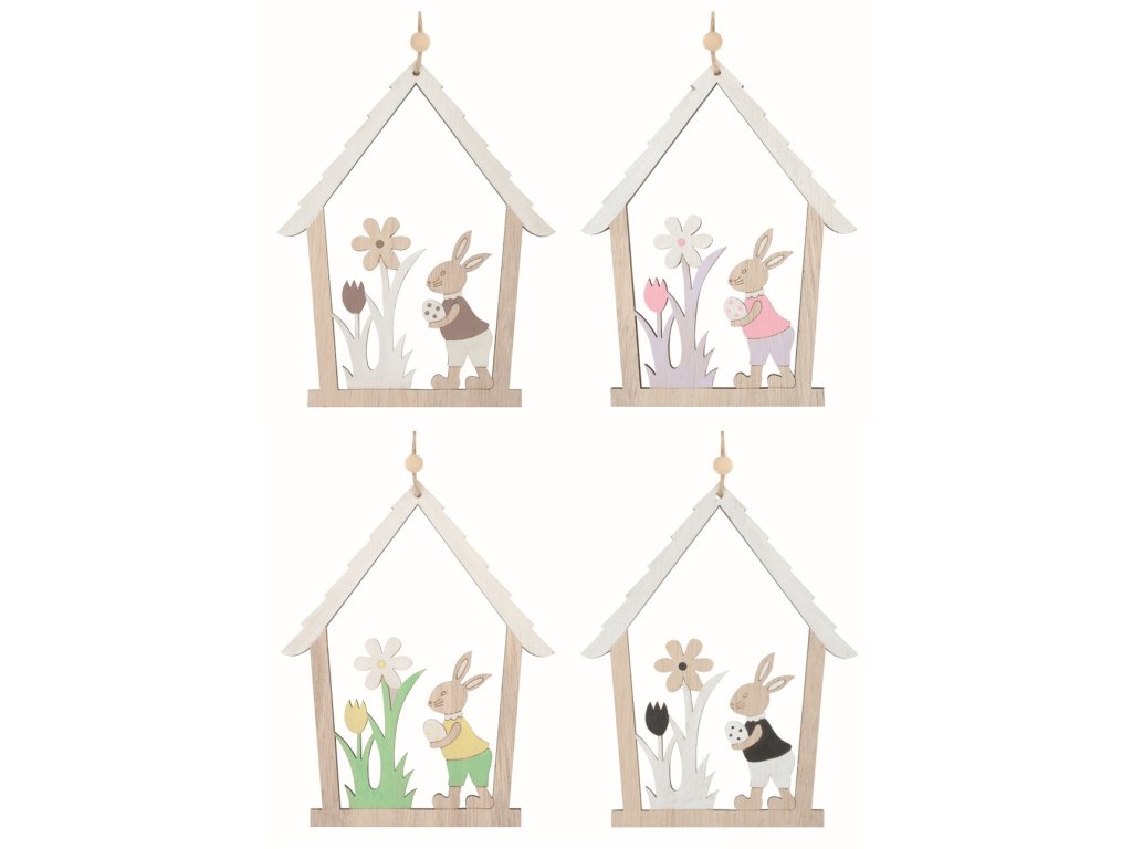 Domek se zajícem dřevěný 13,5 x 17 x 0,5 cm na zavěšení