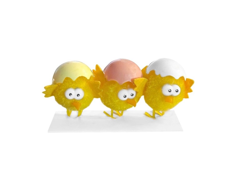 Barva kuřátka: žlutá; klobouky: bílá, žlutá a růžová
