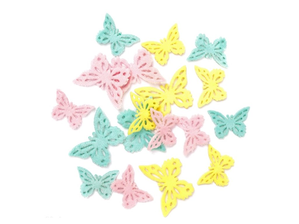 Motýlci plyšoví samolepící 15 ks pasteloví