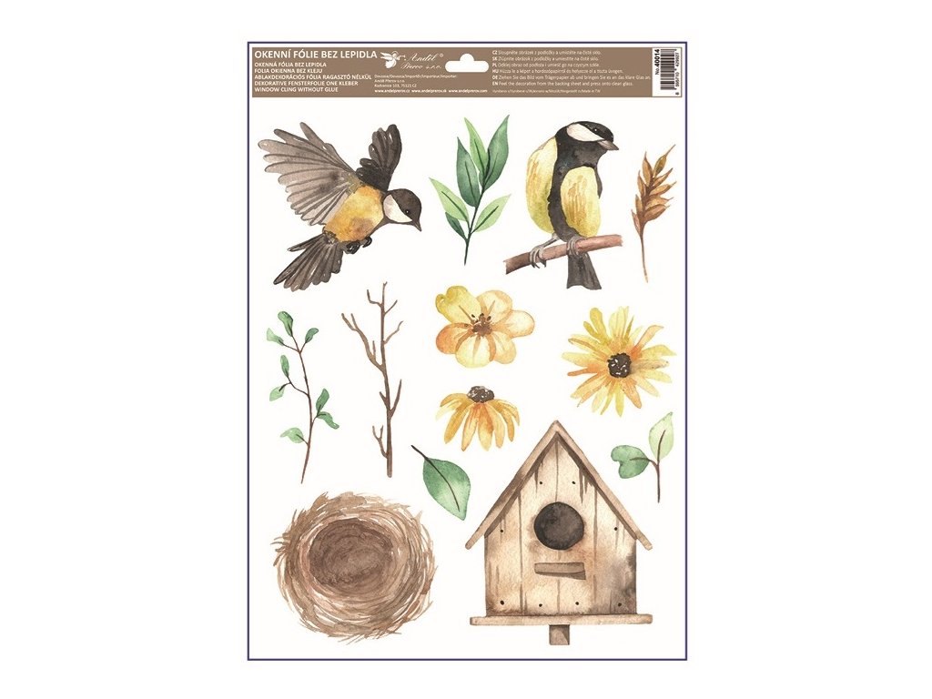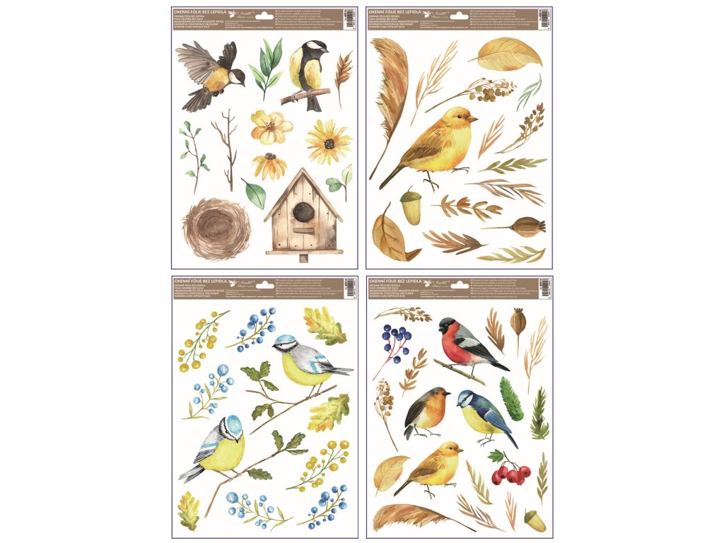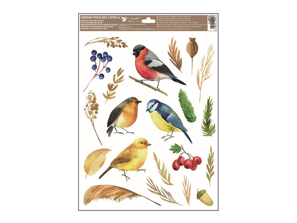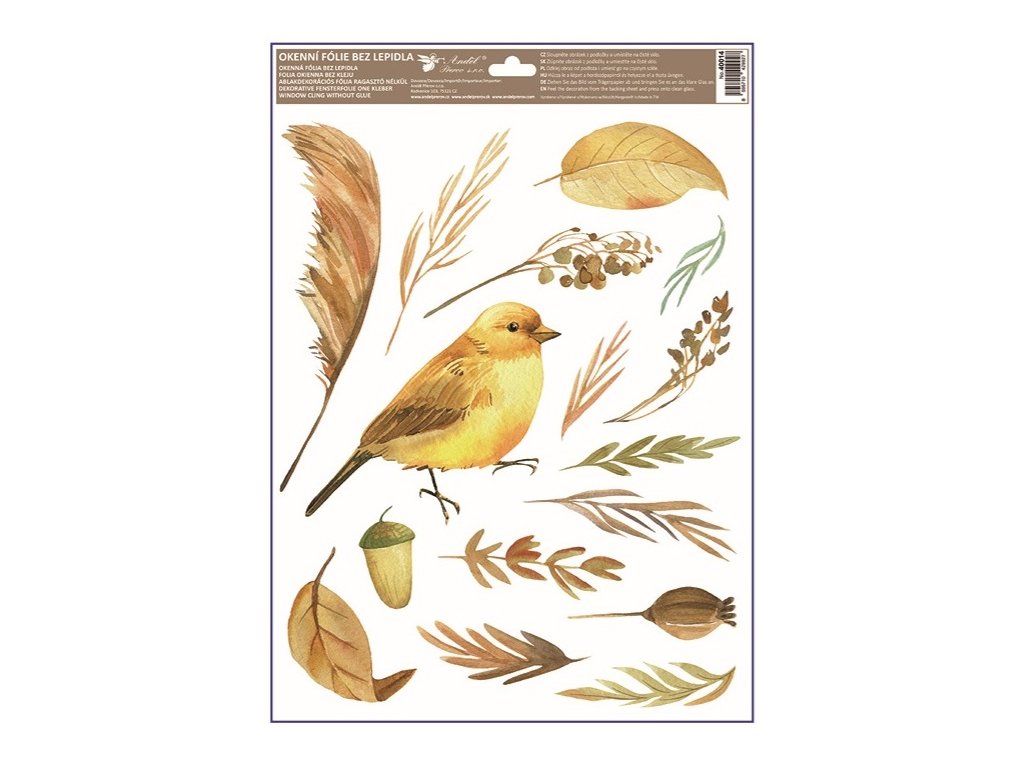 Dekorační okenní fólie s motivem ptáků, listí a podzimních plodů vnese do interiéru klidnou a hřejivou atmosféru podzimu. Jemně propracovaný přírodní motiv působí harmonicky a elegantně a krásně vynikne na oknech i dalších skleněných plochách. Díky elektrostatickému přilnutí se fólie aplikuje bez použití lepidla, nezanechává stopy a je vhodná k opakovanému použití.