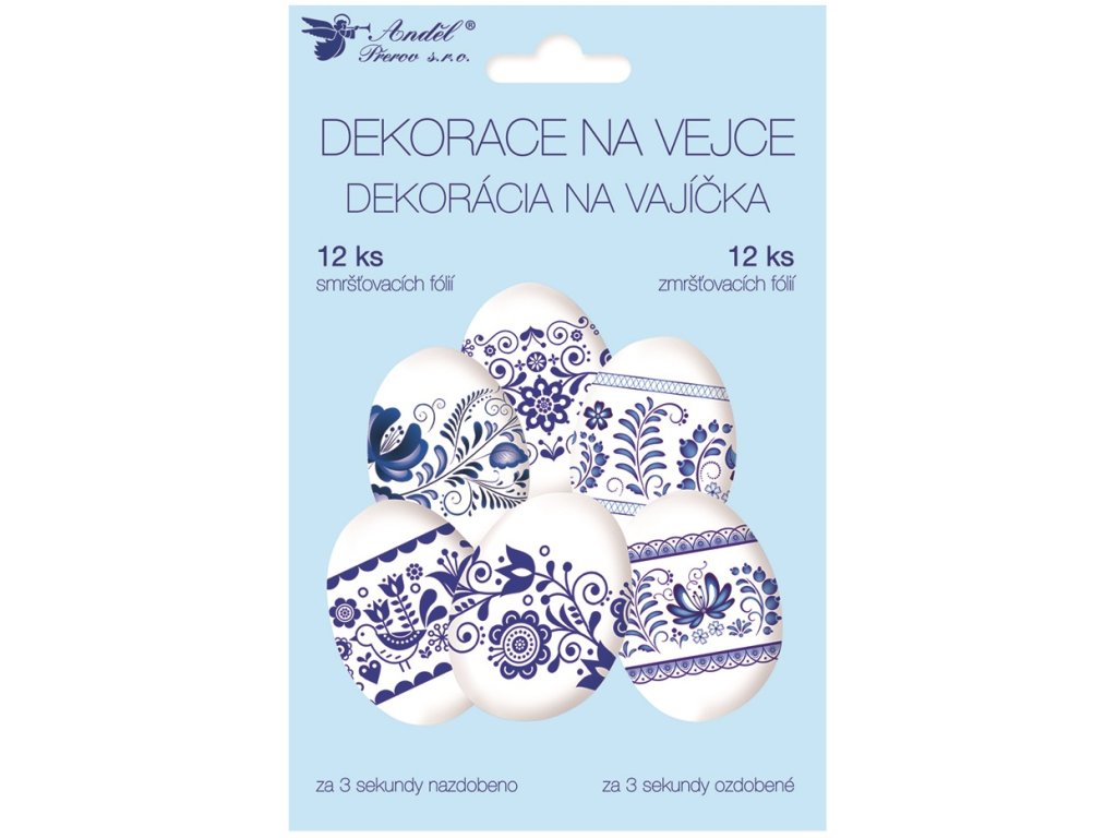 Smršťovací dekorace na vejce, modrý motiv