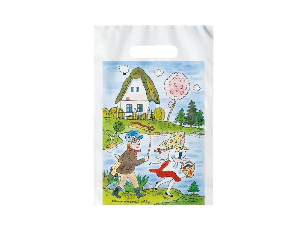 Igelitová taška s průhmatem s velikonočním motivem s ilustrací od Aleny Ladové. Velikost: L 29,5x46x8 Vyrobeno z PVC Tloušťka materiálu: 0,045 my