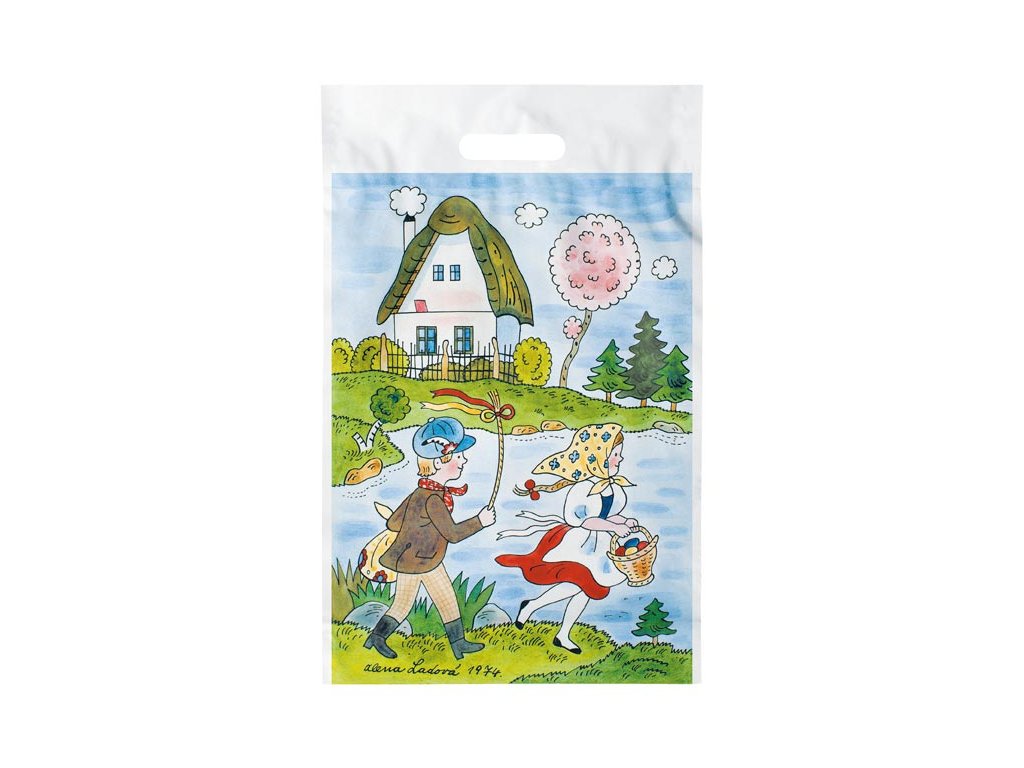 Igelitová taška s průhmatem a velikonočním motivem s ilustrací od Aleny Ladové. Velikost: S 20x30x8 Vyrobeno z PVC Tloušťka materiálu: 0,045 my