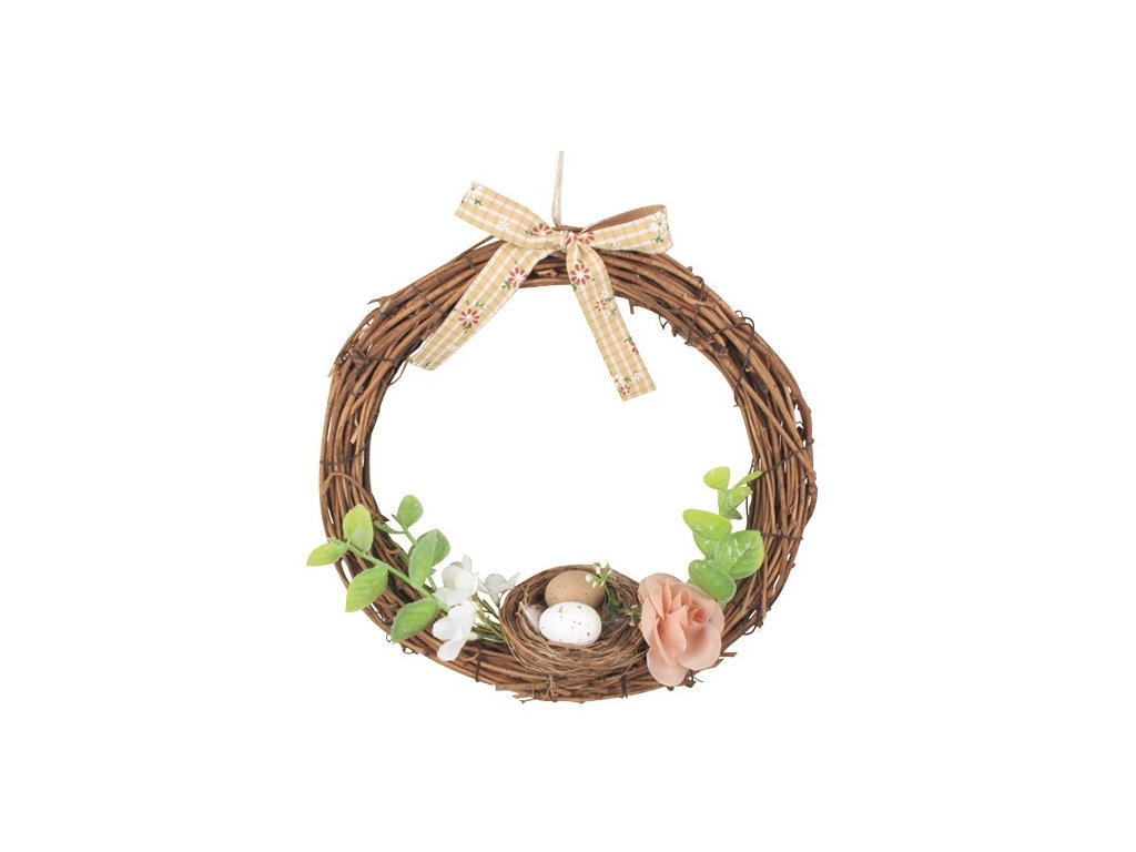 Věnec s hnízdem a hnědou mašlí 20 cm