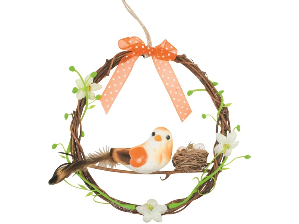 Věnec s ptáček a s hnízdem 14 cm na zavěšení
