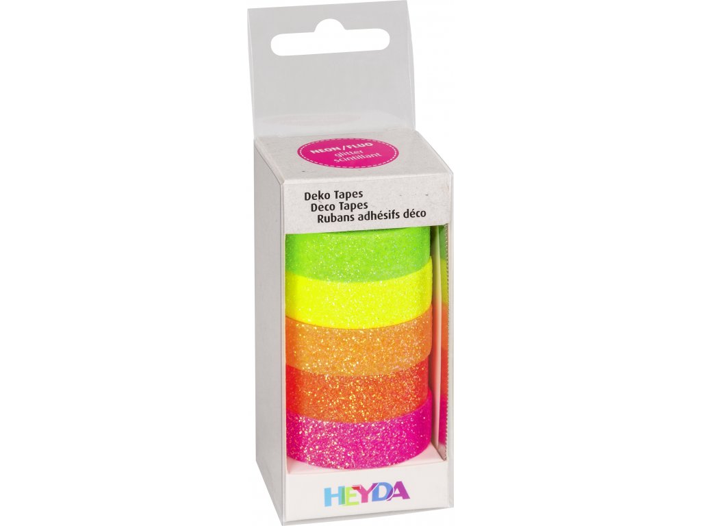 Páska washi lepicí papírová, neon, glitrová 5 ks
