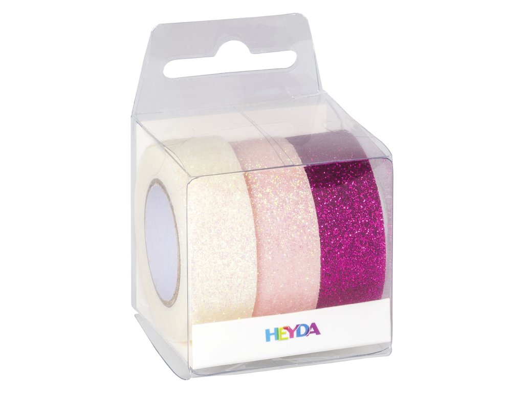Páska lepicí papírová 3ks - Glitr pink/růž/bílá .