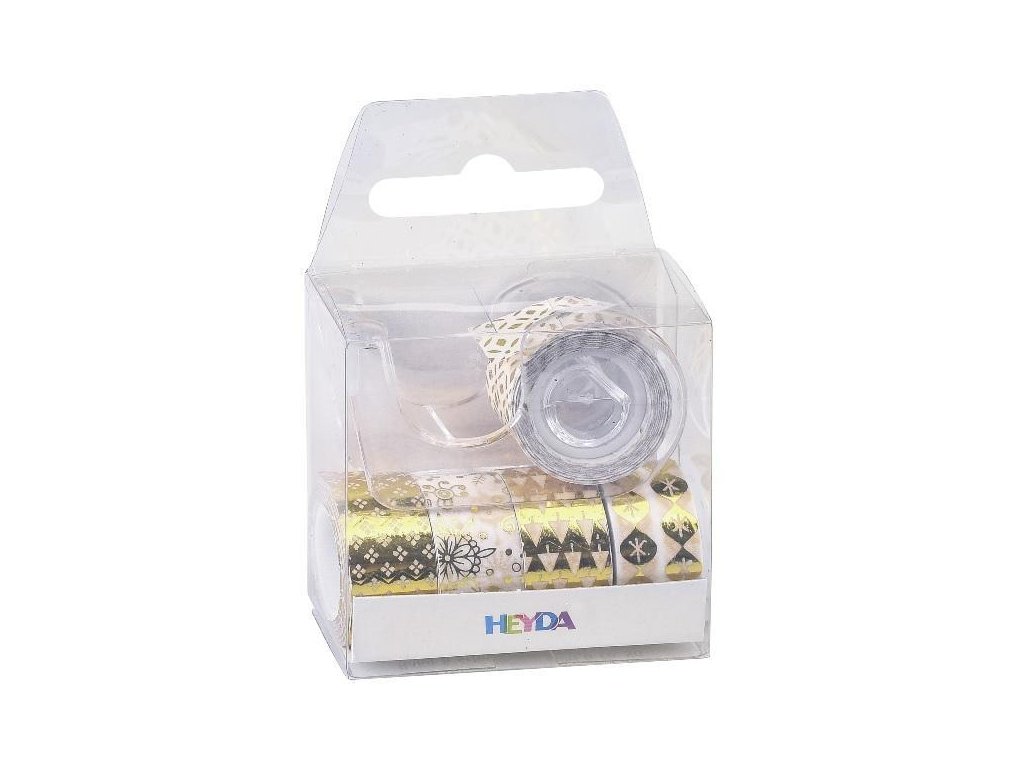Sada obsahuje 5 mini rolí o šířce 1,2cm a délce 3m a praktický odvíječ.
