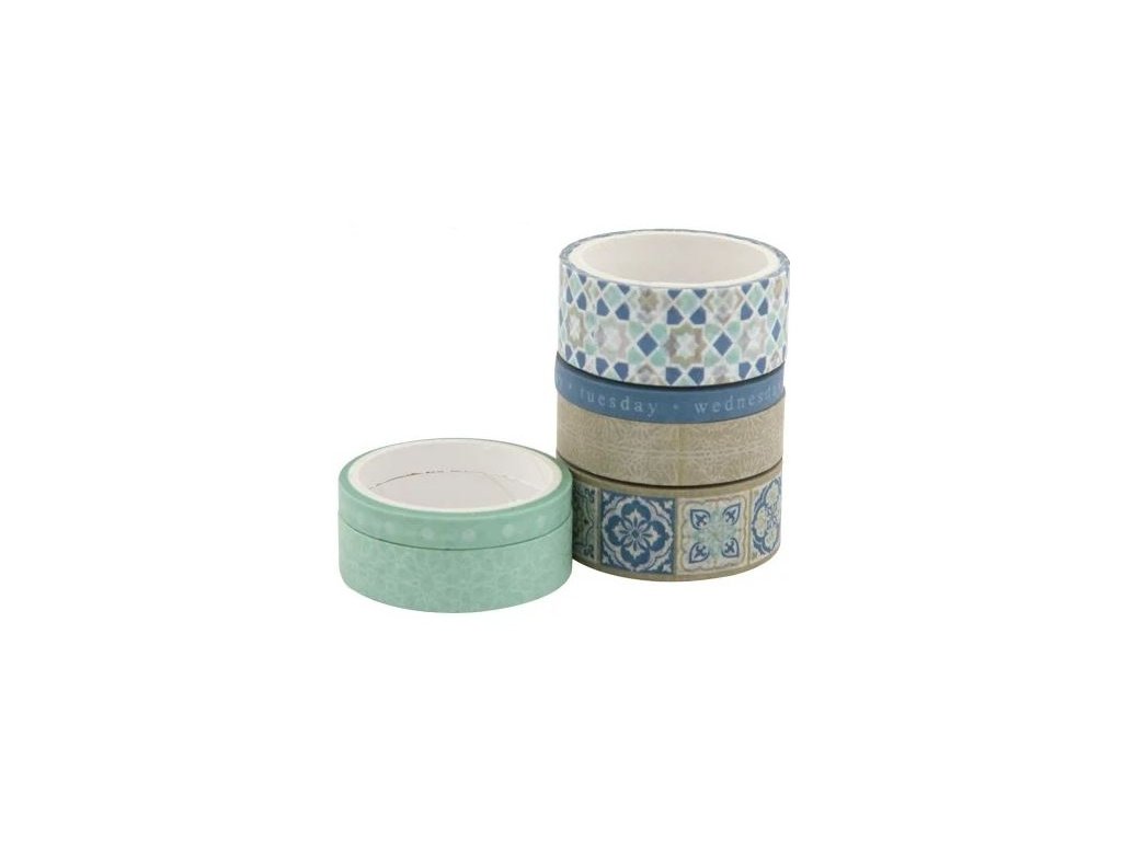 Samolepicí papírová washi páska sada - zeleno modré se vzory (6ks)