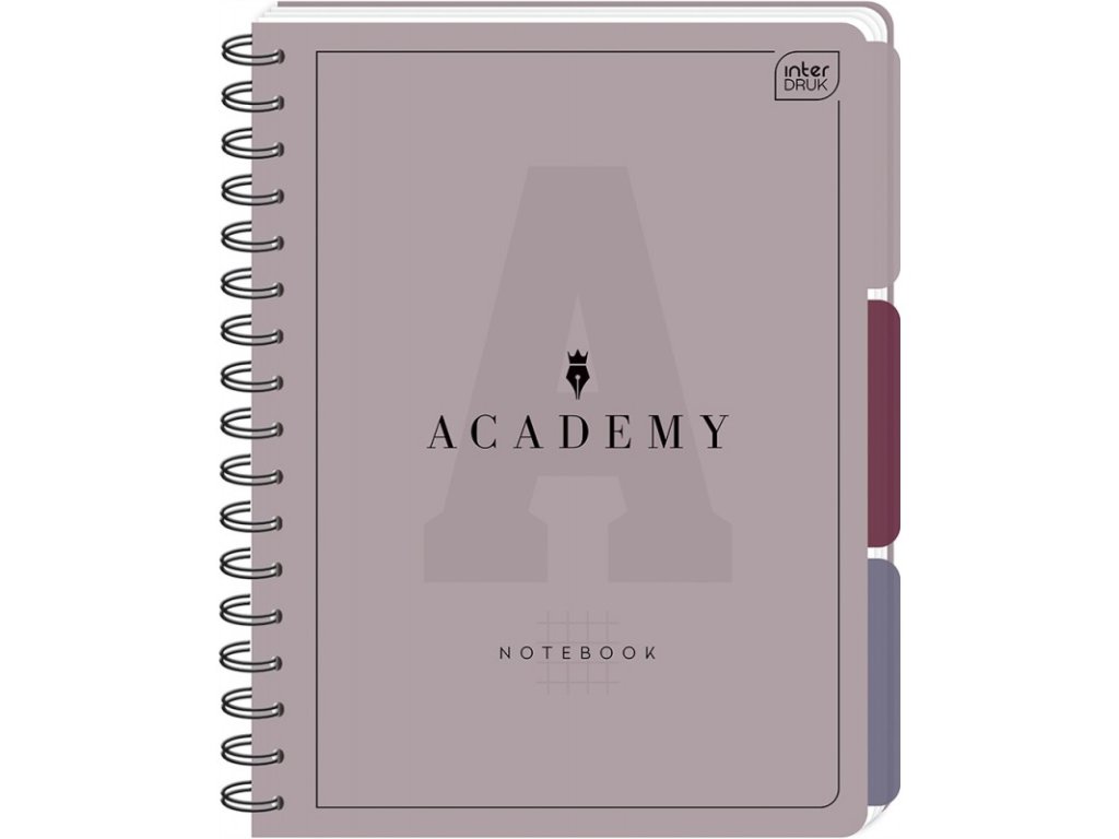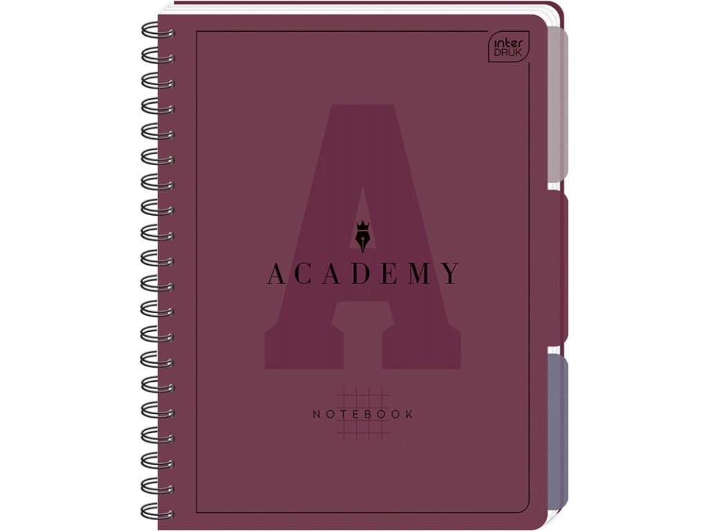 Formát: A5. Počet listů: 100. Kostkovaný tisk. Zaoblené hrany. Uvnitř silné a superhladké listy speciálního 90g papíru, díky kterému se pero nepropíchne na druhou stranu. Kryt je potažen na dotek příjemnou fólií soft touch a selektivním lakem. Signované stránky s mikroperforací. Uzamykatelná dvojitá spirála. Academy je prémiová kolekce psacích potřeb vytvořená pro žáky a studenty, kteří oceňují kvalitu produktu a pohodlí při psaní. K dispozici ve dvou stylových barevných verzích: pastelové a tlumené.